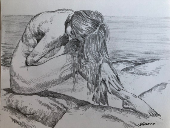 Original Graphite Figure Drawing Wall Art 10 By 8 Seascape Etsy Uk